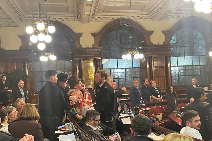 Chants of “bailiff free Britain” rang through the council chamber as campaigners highlighted the alarming numbers. One waved an Acorn flag while another held a sign reading “boot the bailiffs.”