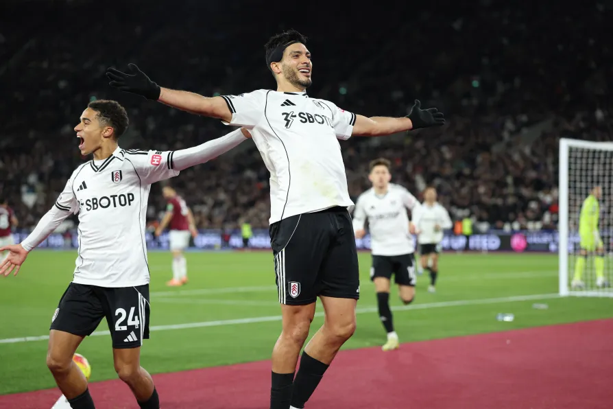 SCORE: Fulham's Raul Jimenez celebrates scoring his team's first goal