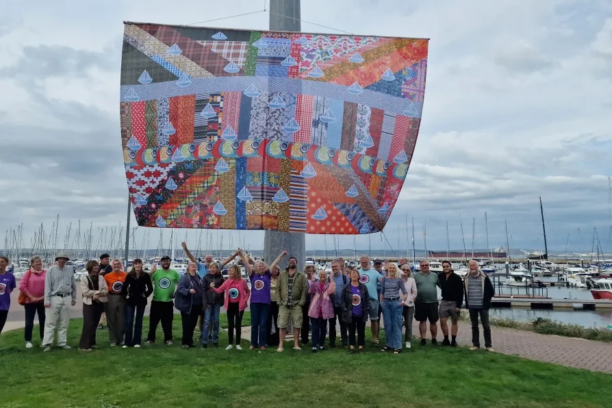 The New Union Flag is a participatory artwork by Gil Mualem-Doron, reimagining the Union Flag through textiles representing Britain’s diverse communities.