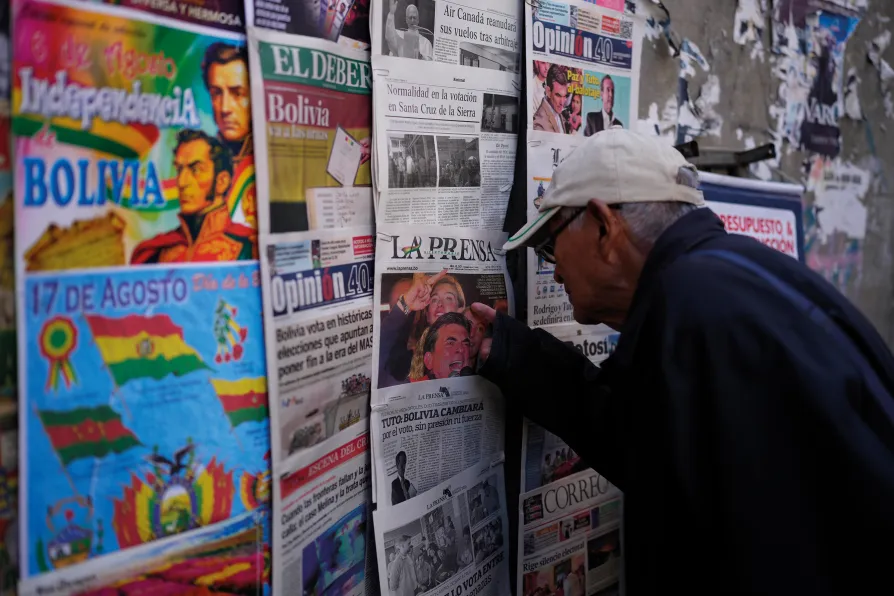 A man looks at newspapers front pages the day after presidential and legislative elections in La Paz, Bolivia