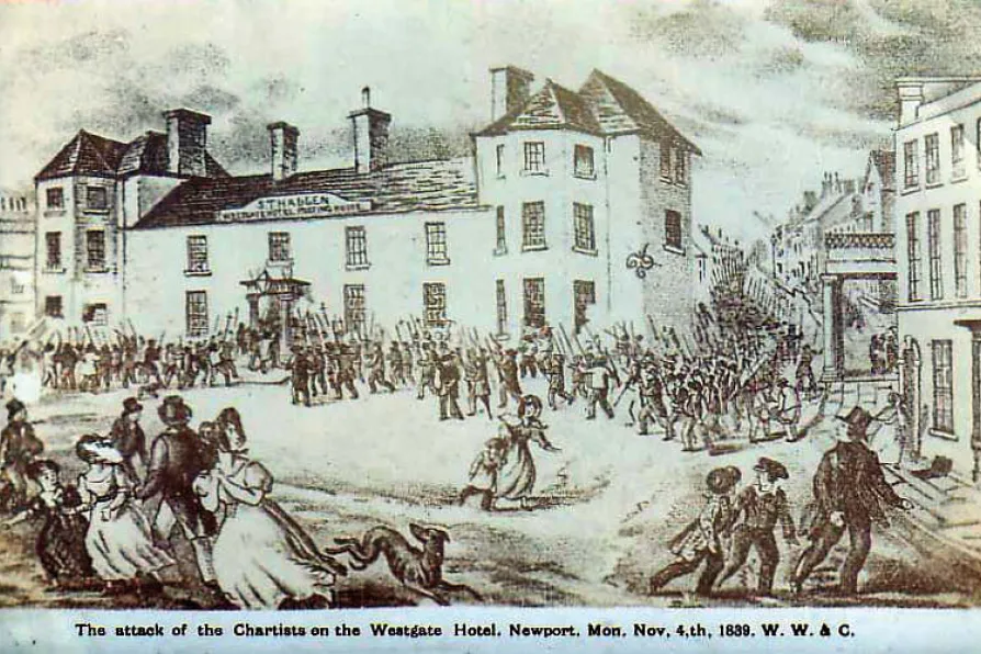 PROTEST PIONEERS: The assault of the Chartists on the Westgate Hotel, where some of their comrades were held prisoner, Newport, 1839