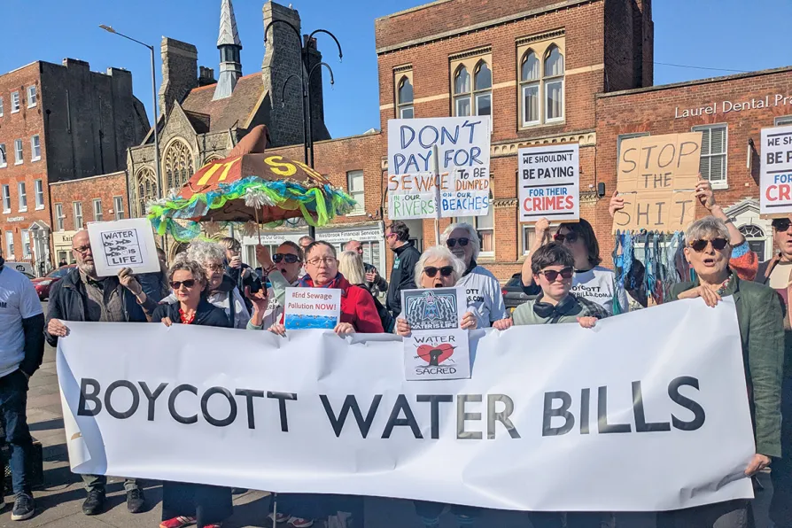 Water Bills Boycott campaigners demonstrate in Margate, March 19, 2026