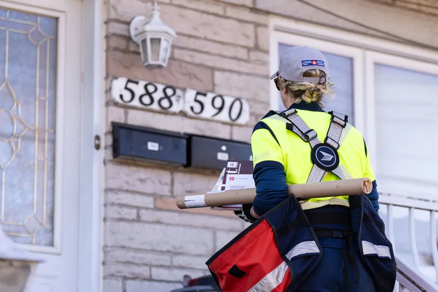 A Canada Post mail carrier delivers mail and packages on their route in Montreal, November 13, 2024