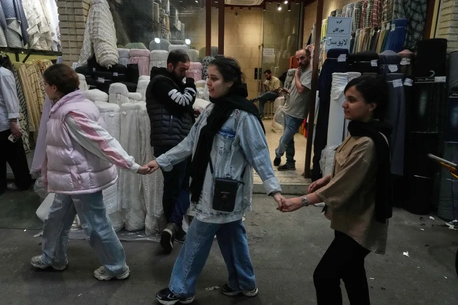 Women walk at Tehran's historic Grand Bazaar, Iran, February 23, 2026