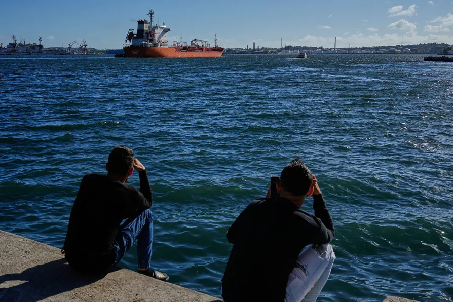 People watch the oil tanker Ocean Mariner, Monrovia, arrive to the bay in Havana, Cuba, January 9, 2026
