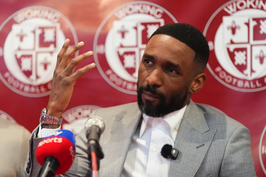 Newly appointed Woking manager Jermain Defoe during a press conference at the Laithwaite Community Stadium, Woking, April 1, 2026