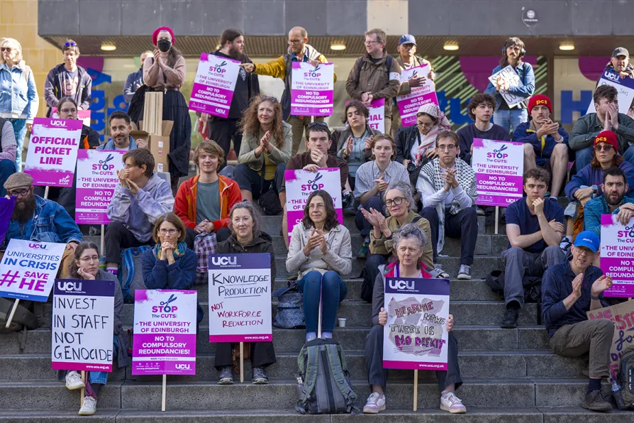 UCU members at Edinburgh University gather for a rally in George Square, Edinburgh, September 8, 2025