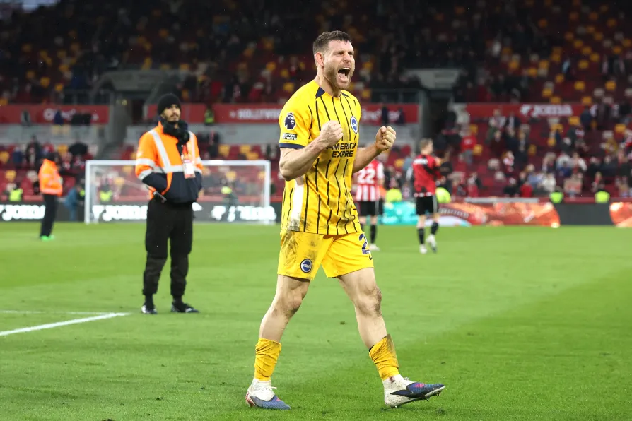 Brighton and Hove Albion's James Milner in front of the fans following victory in the Premier League match at the Gtech Community Stadium, London, February 21, 2026