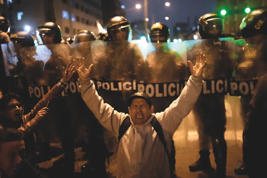 On Saturday, protesters marched peacefully from Dos de Mayo Square to San Martin Square. When they reached San Martin Square, agents of the Peruvian National Police (PNP) began to repress them.