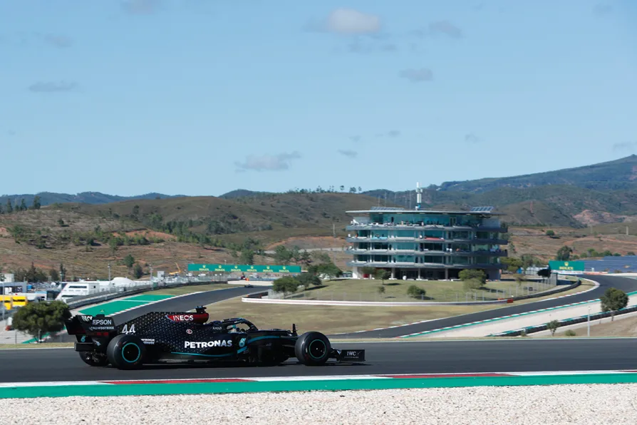 Britain’s Lewis Hamilton won at Portimao in 2020 en route to claiming the last of his seven world titles.