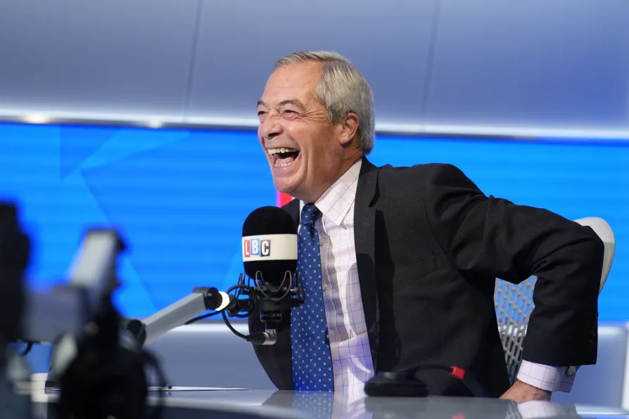 Reform UK leader Nigel Farage during an appearance on LBC's Nick Ferrari at Breakfast show, at the Global Studios in London, September 24, 2025