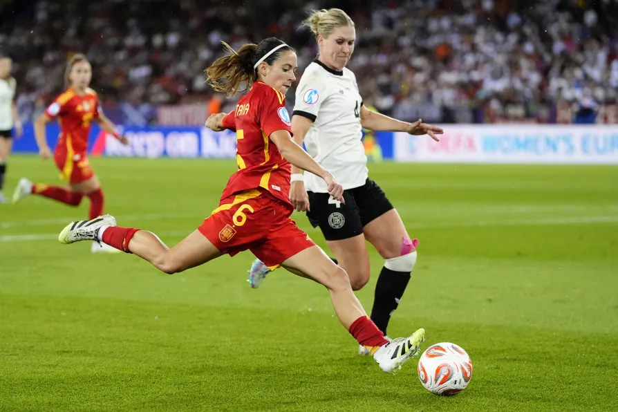 Spain's Aitana Bonmati scores their side's first goal of the game during the UEFA Women's Euro 2025 semi-final match at the Stadion Letzigrund in Zurich, Switzerland, July 23, 2025