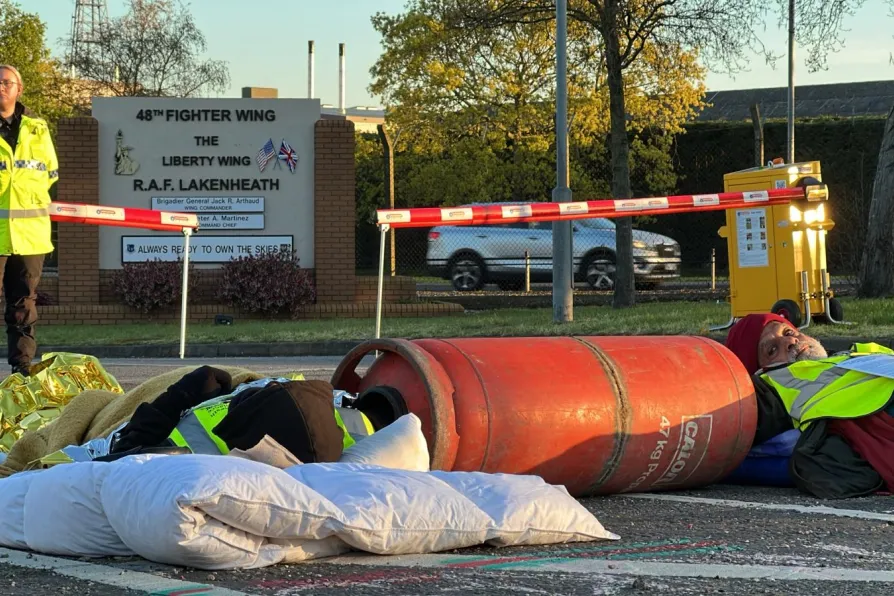 Tuesday’s action follows a week-long peace encampment erected outside RAF Lakenheath, which drew to a close on today.