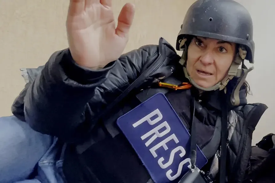 This documentary accompanies her to the front line in Ukraine, and back home in her New York apartment where her husband, also a journalist, looks after their two small children. The film cuts from her shooting images of the bombings and casualties in Ukraine to sitting comfortably on a couch at home with her husband viewing these self-same images on a laptop, now featured on the front pages of big circulation newspapers. This contrast is so incongruous.
