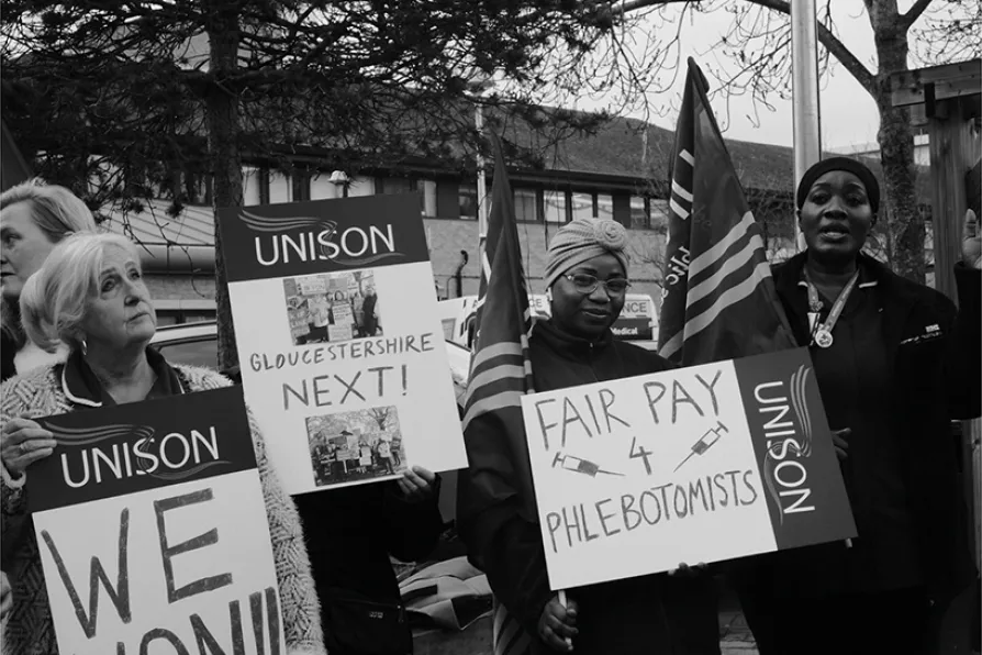 Instead, the Gloucestershire phlebotomists are back at work. Their 358-day strike for regrading and backpay has been the most bitterly fought of Unison’s flagship Pay Fair for Patient Care regrading campaigns, and the outcome at this point remains unclear still.