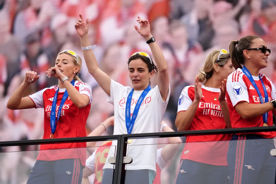 Arsenal manager Renee Slegers during the UEFA Women's Champions League Winners parade in London, May 26, 2025