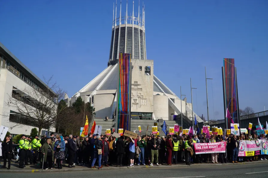 A FAR-RIGHT rally held outside Liverpool Metropolitan Cathedral against the church’s wishes was surrounded by hundreds of counter-protesters on Saturday.