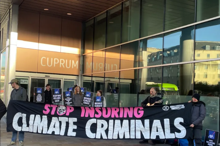 THE Glasgow offices of insurance giant AXA were the target of an Extinction Rebellion protest today, as they accuse the company of “keeping killers safe.”