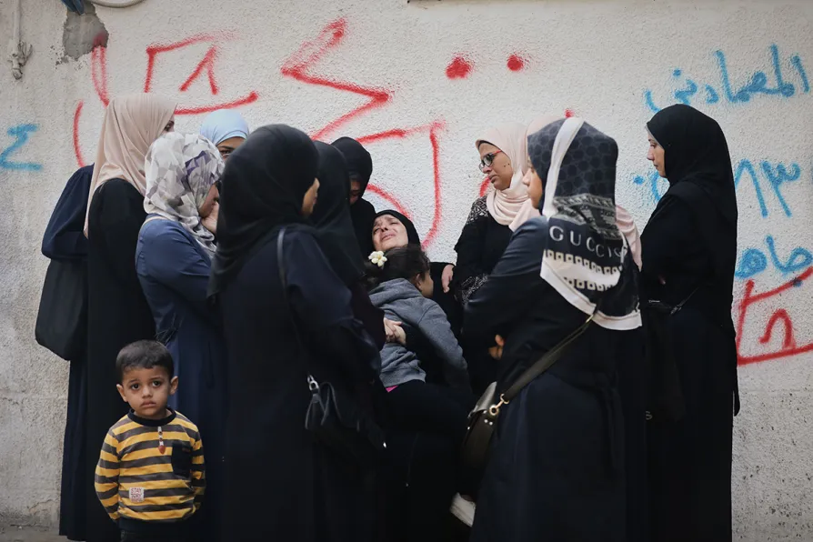 Palestinians mourn their relatives killed in an Israeli army strike, at Shifa Hospital in Gaza City, October 29, 2025