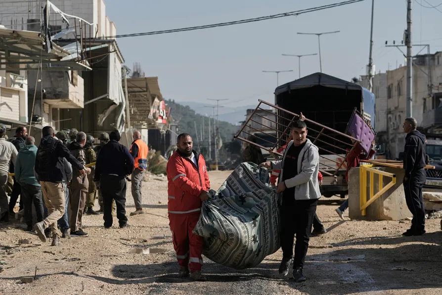 Palestinians collect their belongings ahead of a planned Israeli army home demolitions in the refugee camp of Nur Shams, in the West Bank city of Tulkarem, December 17, 2025