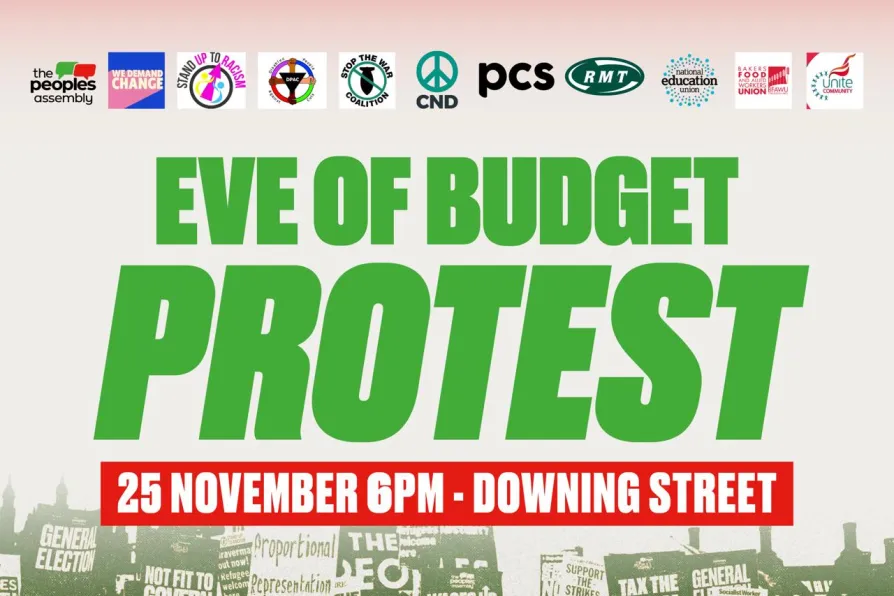 Join the Eve of Budget Protest November 25, 6pm — Downing Street. Be there with your friends, your union branch, your neighbours and your noise.