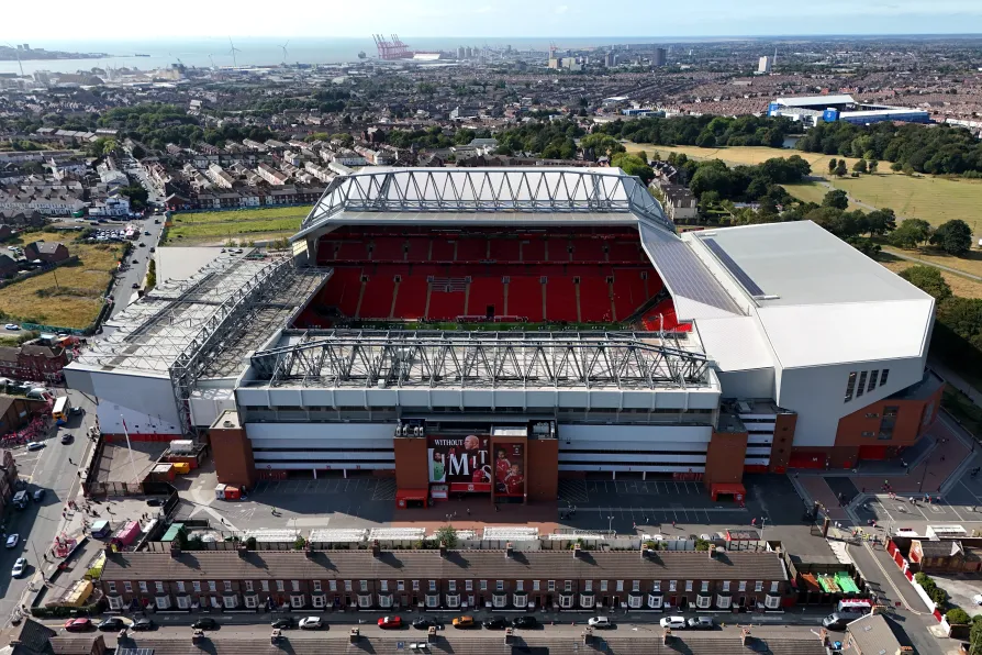A general view of Anfield via a drone before the Premier League match at Anfield, Liverpool, August 15, 2025