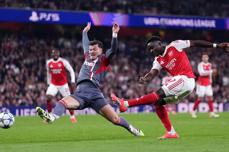 A LATE strike from substitute Bukayo Saka sealed a Champions League victory for Arsenal on a nervy Islington evening following Gabi Martinelli's early first-half opener.