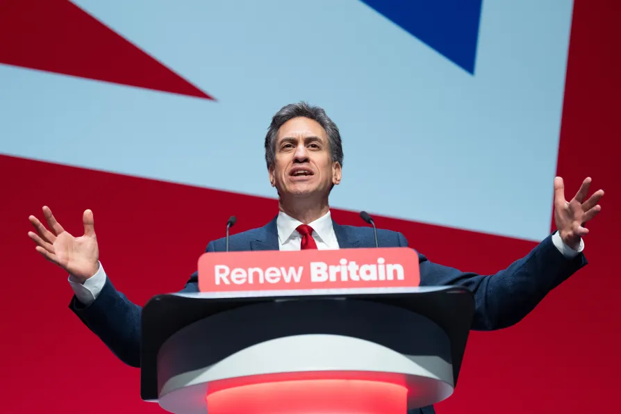 Energy Secretary Ed Miliband addresses delegates at the Labour Party Conference in Liverpool, October 1, 2025