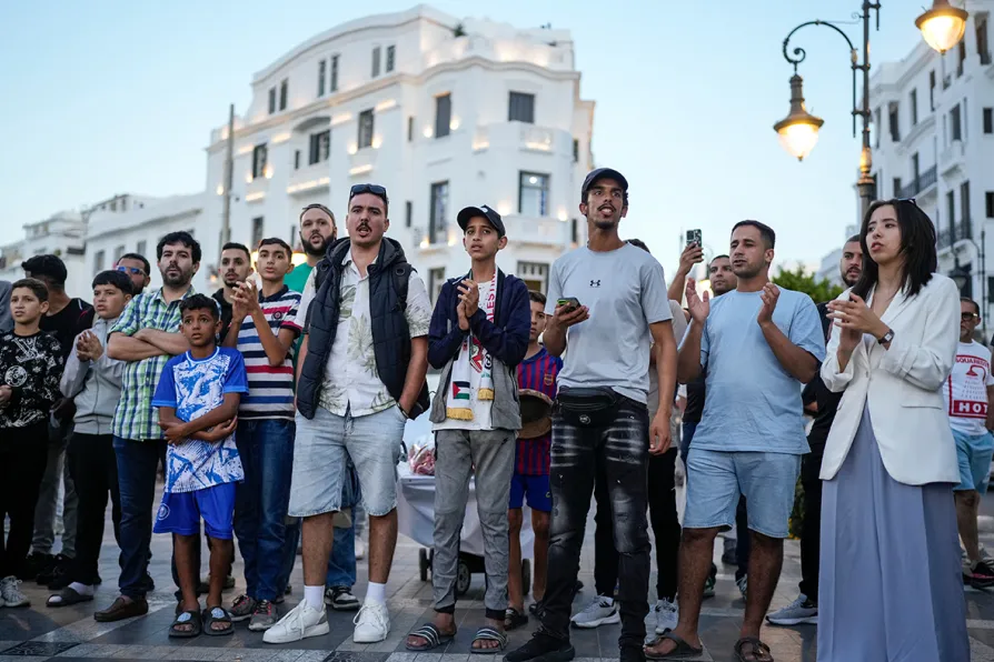 People take part in a youth-led protest calling for education and healthcare reforms, in Tangier, Morocco, October 18, 2025