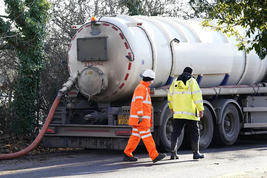 A tanker pumps out excess sewage from the Lightlands Lane sewage pumping station in Cookham, Berskhire which flooded after recent heavy rainfall, January 10, 2024