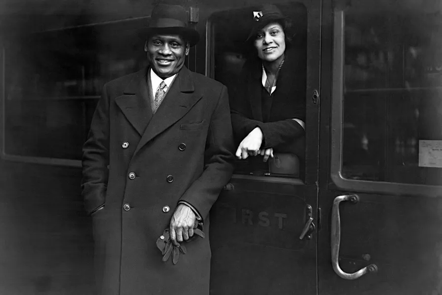 American singer Paul Robeson at Waterloo Station, leaving for Hollywood to act in his first film, May 1933
