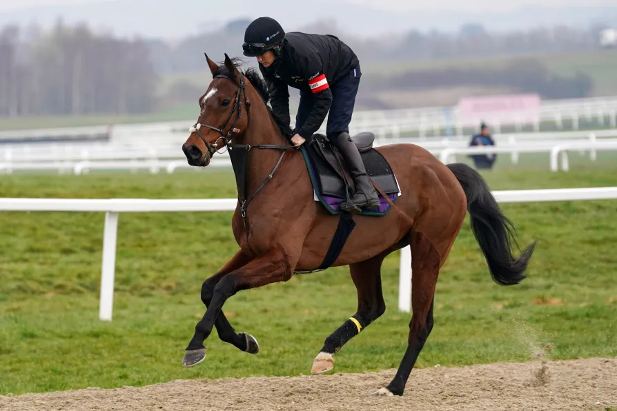 Jockey Rachael Blackmore with Monty's Star on the gallops ahead of day four of the 2025 Cheltenham Festival at Cheltenham Racecourse, March 14, 2025