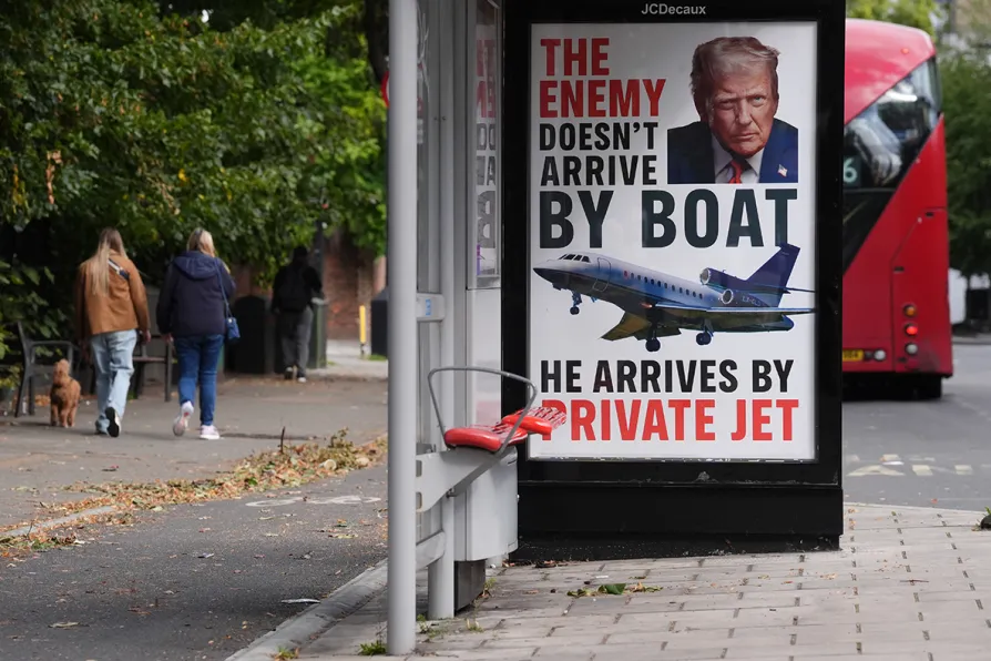 A poster on a bus stop on Baylis Road in Southwark, south London, September 16, 2025