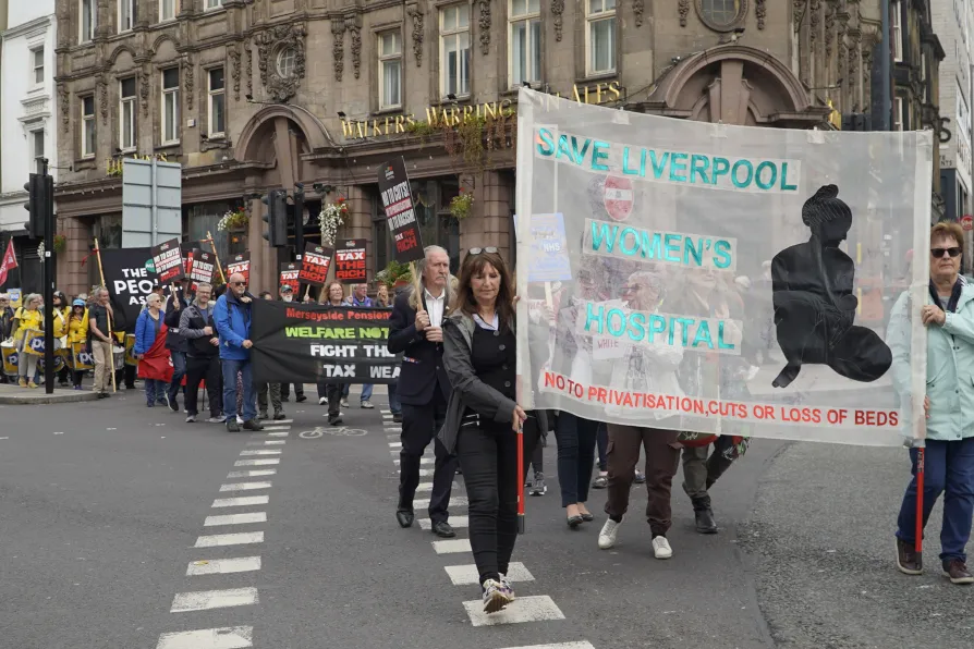 PROTESTERS marched to defend Liverpool Women’s hospital and demand urgent action against the creeping privatisation of vital NHS services today.