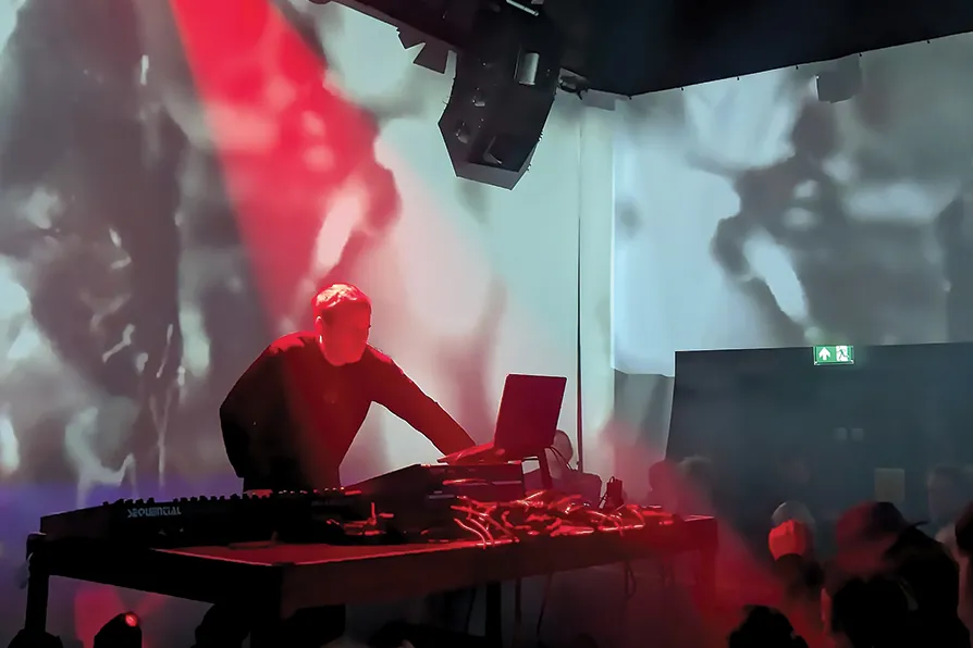VIDEO projections depicting sketches of pagan ritual in blood red and sepia envelop the four walls of Hove’s intimate independent music and theatre venue, The Old Market, as Paul Hartnoll, one half of the Orbital brothers, dons his trademark head-mounted lights to perform his new so-called Folk-Horror-Electro-Techno-Disco Roadshow.