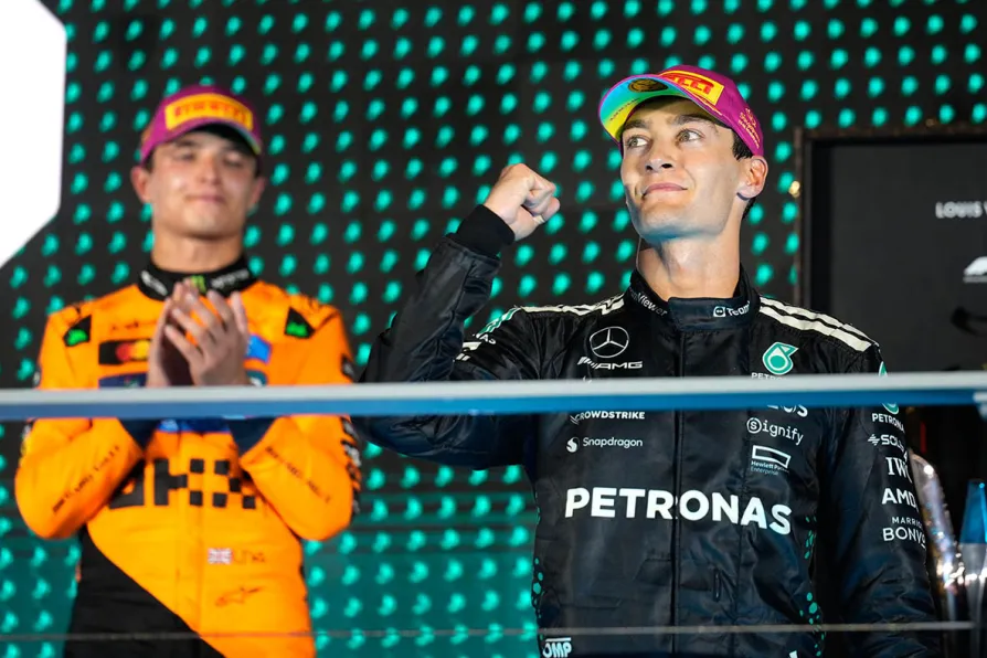 Russell crossed the line a commanding 5.4 seconds clear of Verstappen, who finished just six-tenths ahead of Norris, with Piastri two seconds further back.