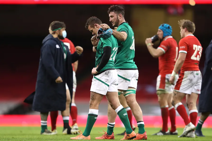 Ireland lost their veteran back-row forward after just 15 minutes as Peter O’Mahoney was shown a red card by referee Wayne Barnes for a reckless shoulder barge to the head as he tried to clear out a ruck.