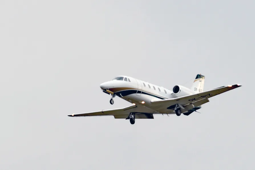 A private jet coming in to land at Stansted Airport in Essex