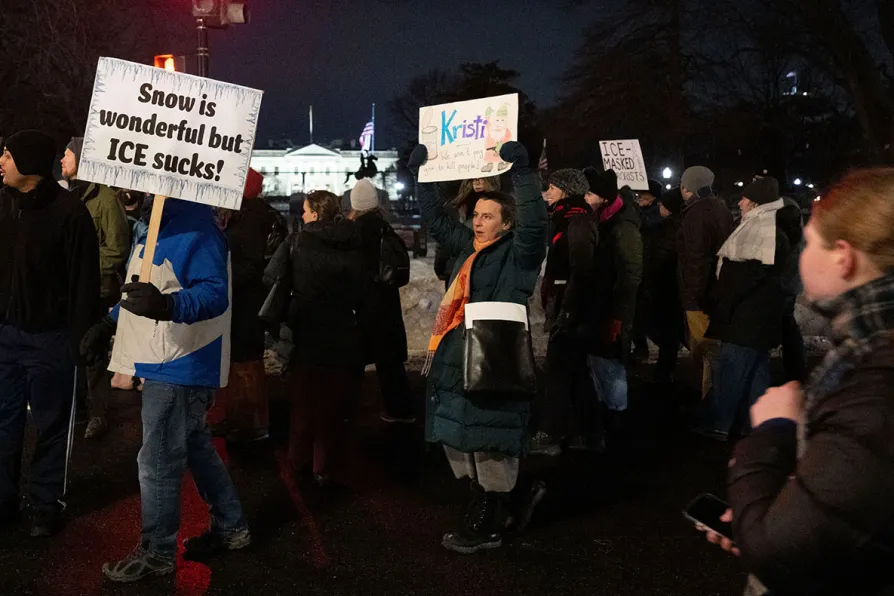 Protesters walk near the White House following a vigil for Alex Pretti that started outside Veterans Affairs headquarters, Washington, January 28, 2026