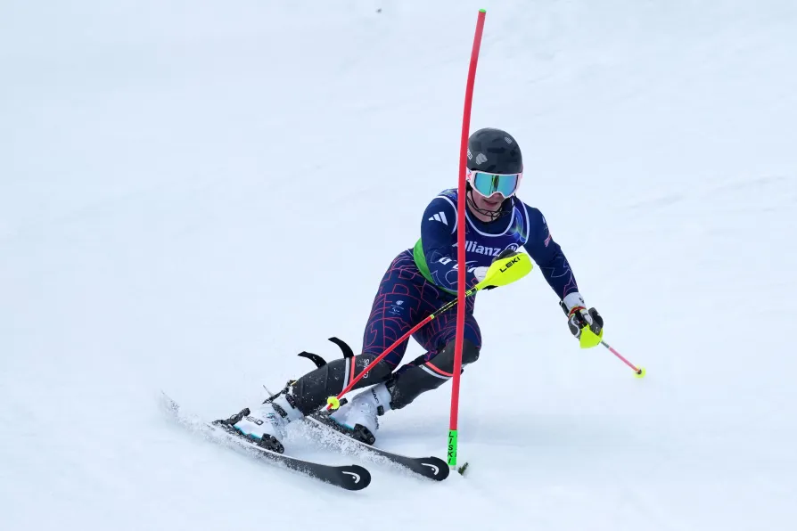 Neil Simpson, of Britain, competes in the alpine skiing men's alpine combined VI slalon event at the 2026 Winter Paralympics, in Cortina d'Ampezzo, Italy, March 10, 2026