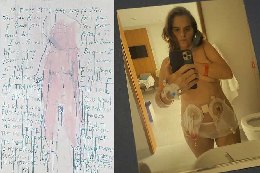 That bright pink plug in her stomach is a part of her small intestine. This is not narcissistic, and we are not voyeurs. She is sharing it. Gifting it.