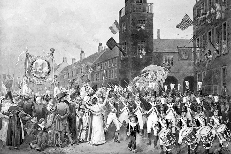 Print depicting the 1791 Bastille Day celebration in Belfast, discussed in the entry for Society of United Irishmen Pic: John Carey/CC