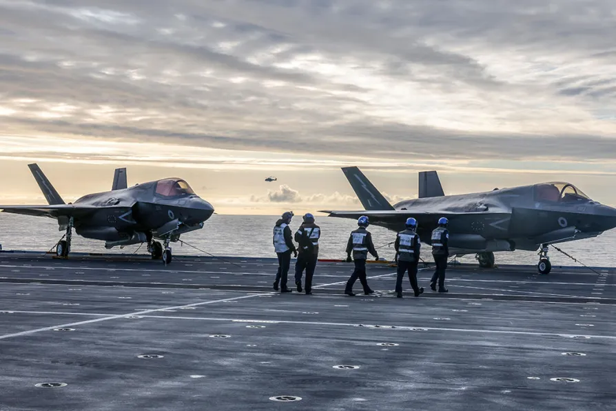 F35 fighters on the flight deck of HMS Prince of Wales, the Royal Navy's flagship aircraft carrier, in Plymouth, Devon, ahead of an eight-month deployment to the Indo-Pacific region on Operation Highmast, April 24, 2025