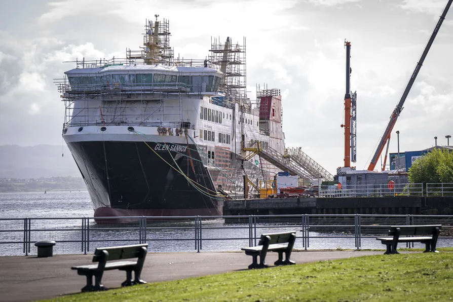 The unfinished Glen Sannox Caledonian Macbrayne ferry in the Ferguson Marine shipyard in Port Glasgow, Inverclyde, May 10, 2022