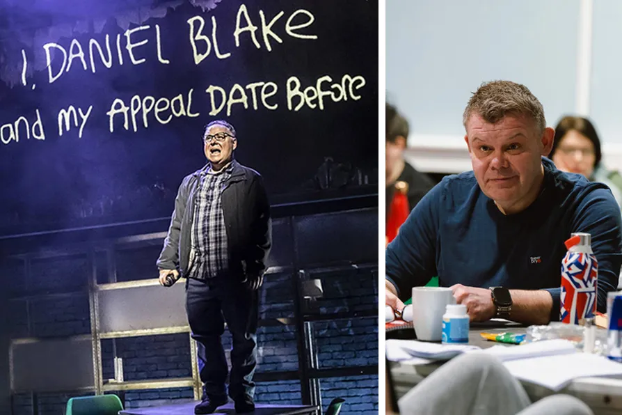 (L) David Nellist as Daniel Blake; (R) Director Mark Calvert [Pic: Pamela Raith Photography/Northern Stage]