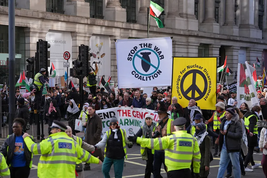 Co-organiser Stop the War Coalition said that the movement “remains strong and refuses to be duped” by US President Donald Trump’s so-called Board of Peace and his Gaza redevelopment plan.