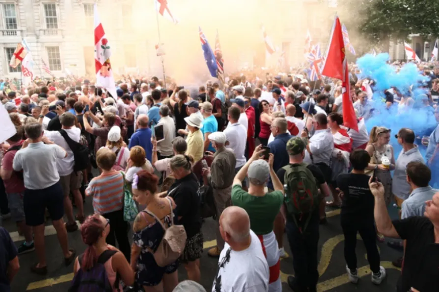 Free Tommy Robinson supporters and Pro-Trump supporters come together on Whitehall, London yesterday