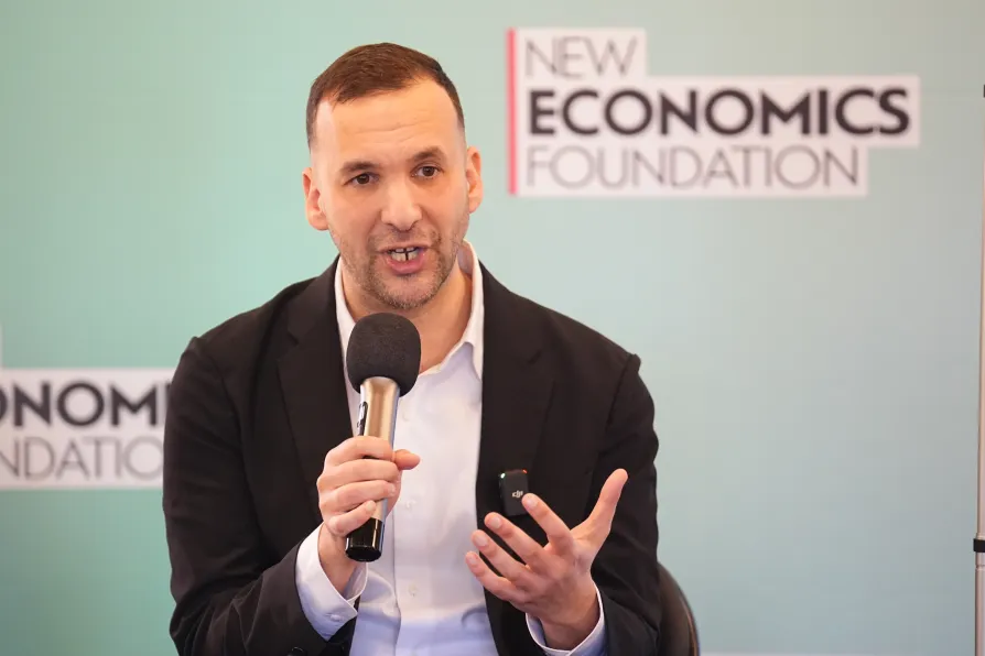 FORWARD THINKING: Green Party leader Zack Polanski delivers a keynote speech at the New Economics Foundation at Wolves Lane Centre in London