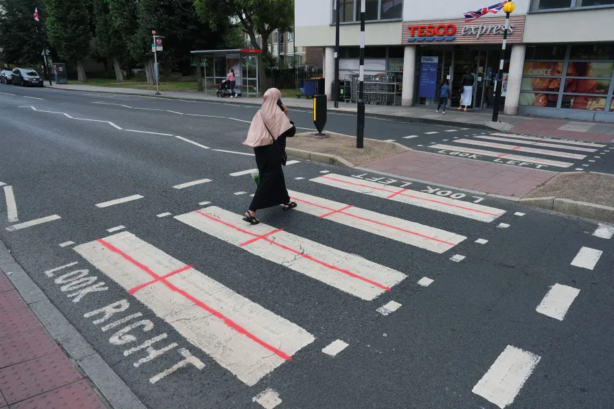 ACT OF INTIMIDATION: A pedestrian crossing defaced to resemble a St George’s cross, in part of a spate of such incidents recently
