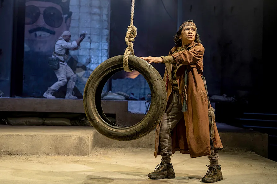 Rajha Shakiry’s war-torn set, a ravaged garden dominated by an image of Saddam Hussein and the American flag, provides an effective and atmospheric space for seamless scene changes and the split action sequences that still need to fully find their dramatic clarity.